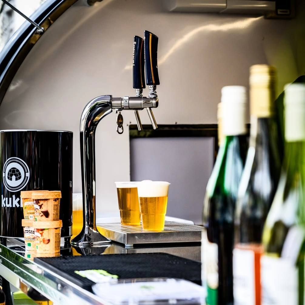 Tauche ein in eine Welt des Geschmacks mit unserem exklusiven Party-Trailer. Von knusprigem Flammkuchen über erlesene Weine aus der Region bis hin zu frisch gezapftem Bier und verlockenden Cocktails – wir verwöhnen deine Sinne mit einer Vielfalt an kulinarischen Köstlichkeiten. Aber damit nicht genug! Unsere Desserts und regionales Eis runden das Geschmackserlebnis perfekt ab.